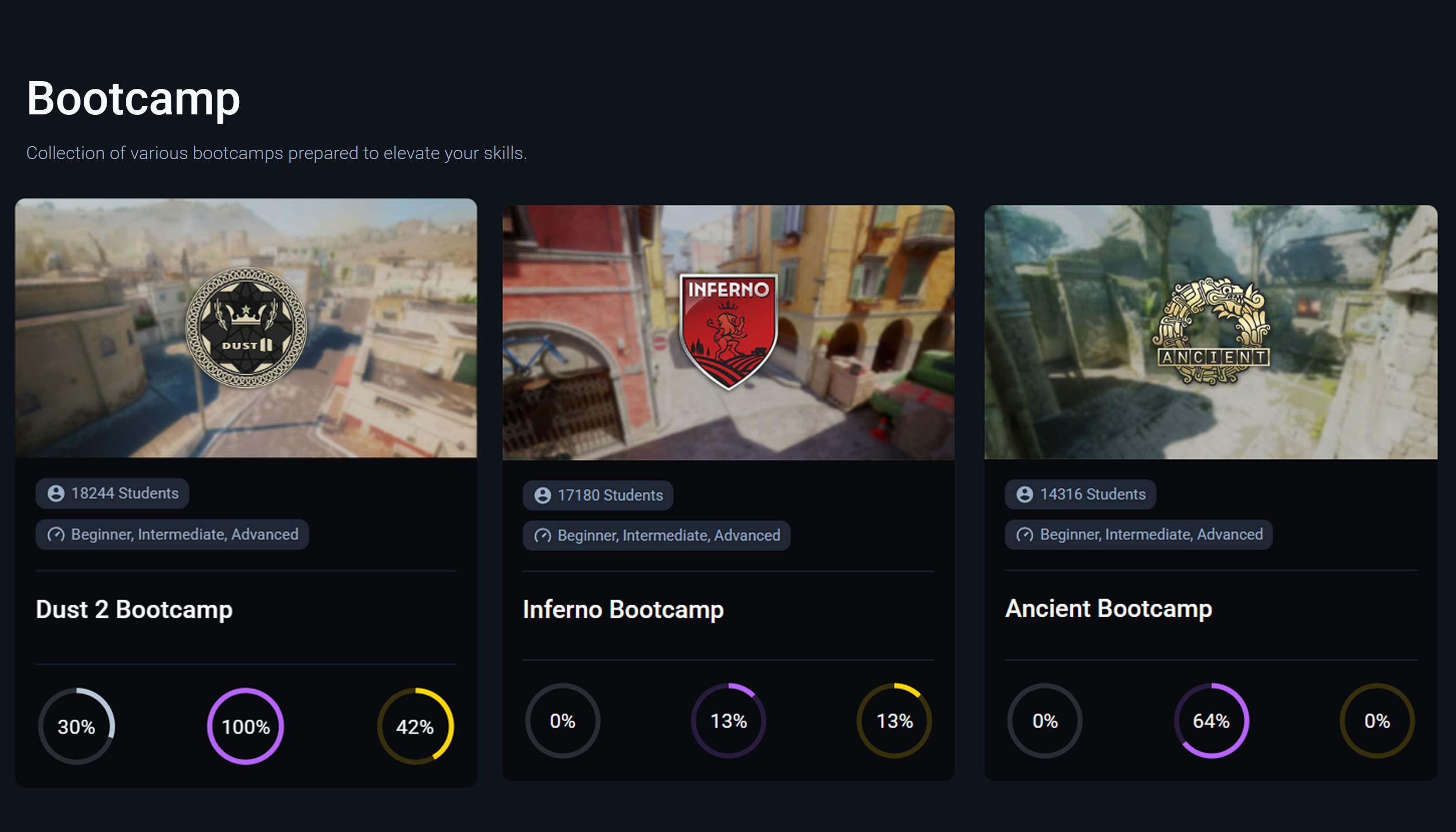 Once you've finished all the tasks, and learnt the Utility necessary. You can attempt the Bootcamp exam. These will test you on everything you've learnt and practiced. If you pass, you'll be rewarded with a badge so you can prove to your teammates that you are skilled, and knowledgeable enough to know what you're doing on that specific map.
